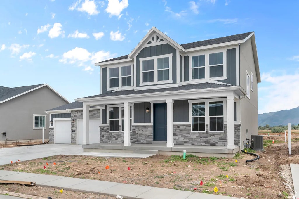 Beautiful brand new 2500 Farmhouse Select home in a great city close, country quiet community! This home blends spacious design with elegant finishes including a modern kitchen featuring gray maple cabinets, quartz countertops, and stainless steel gas appliances. Laminate hardwood, tile, and carpet flooring provide durability and comfort in every space. Designed for convenience and efficiency, this home also includes a tankless water heater, energy-efficient options, and a 3-car garage with an exit door and keypad. The expanded great room and box window in the kitchen nook enhance natural light and openness. Additional standout features include can lighting, Christmas light outlets,2 tone paint, craftsman base & casing, metal railing at the stairway, while the grand bathroom with cultured marble surrounds and black matte hardware exudes a perfect mix of contemporary charm and farmhouse warmth. Come check it out today!