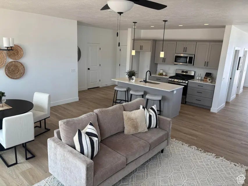 4 Bed 2.5 bed Home with 3 Car Garage. The open floor plan seamlessly connects the living, dining, and kitchen areas. The master suite is conveniently located on the main level, offering a private retreat with its own en-suite bath. Upstairs, you'll find a versatile loft space that can serve as an office, playroom, or additional lounge area.