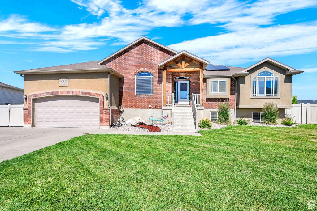 **FHA Assumable first mortgage loan balance is approx. $286,000 at 3.78%!!** Have you dreamed of an HGTV-worthy carefree, low maintenance backyard? If so, this is it!!! With over $130,000 invested into this divine yard space it is an absolute entertainer's paradise! Full vinyl fencing, stamped & stained concrete patios, enormous shade pergola, stone terracing, an above ground pool, trampoline, concreted sports area, an artificial turf dog yard, a convenient shed, drip lines & automatic sprinklers, secondary water & a covered walkout basement entrance that will never leak! The walkout leads to a rentable ADU space, MIL suite or accessory apartment to offset the mortgage or accommodate multi-generational living! The basement has a decorative wainscot, a theater room with mounted speakers, plumbing for a future kitchen, offers cold storage & an under the stairs play space! Additionally, the solar panels offset the electric utility bills! The main living area has vaulted ceilings, a master suite with a separate tub & shower and walk-in closet, an island kitchen with Alder cabinetry, Corian countertops & all brand new stainless appliances including the fridge. The microwave & stove are convection plus the microwave is also an air fryer! The garage has winch lowered overhead storage platforms and all of this is located in a quiet cul-de-sac near shopping & dining!