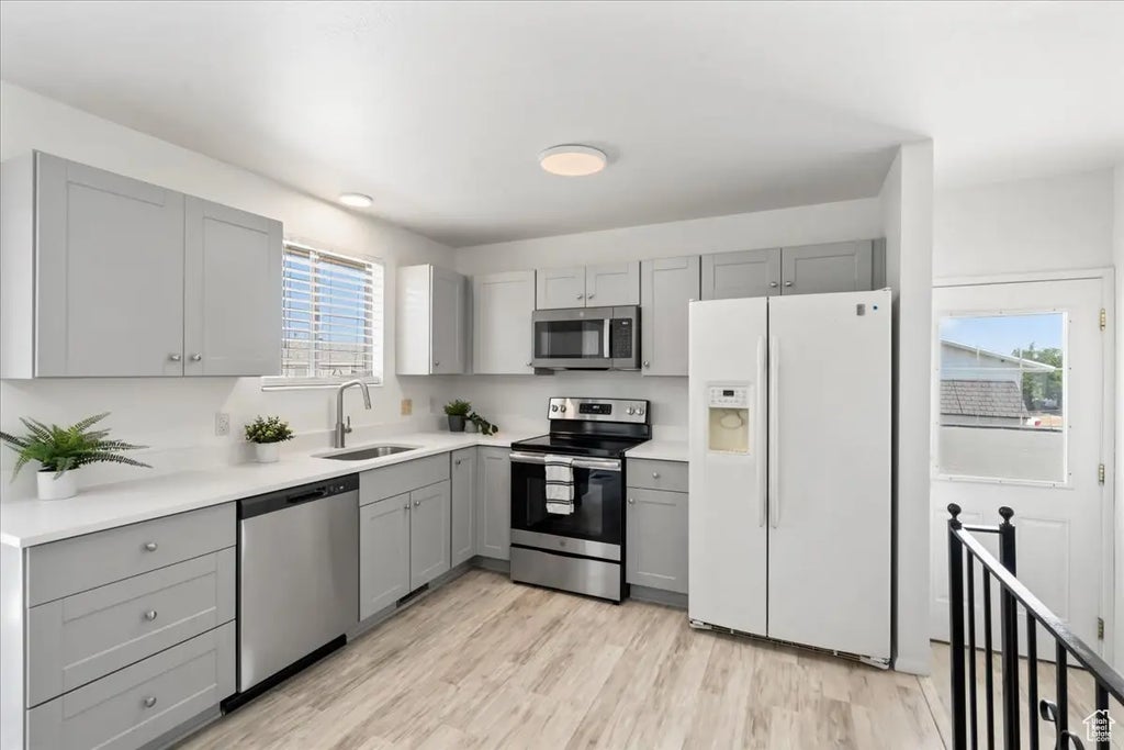 *All New Tempered Windows!* Beautifully updated 4-bedroom, 2-bath rambler with a brand-new kitchen featuring quartz countertops. Bathrooms have stylish finishes and quartz countertops. Fresh paint, plush new carpet with 8-lb pad, updated lighting and plumbing fixtures throughout. *New French doors with tempered glass* bring in natural light. Formal living room upstairs and generous storage downstairs. New HVAC system for year-round comfort. Outside, enjoy apple, almond, cherry, and peach trees. Double-wide driveway extends the full depth of the lot with parking for 68 vehicles. Conveniently located near shopping, dining, and everyday essentials. The Big front living room window still needs to be installed soon. **Seller will contribute toward buyer's closing costs.**