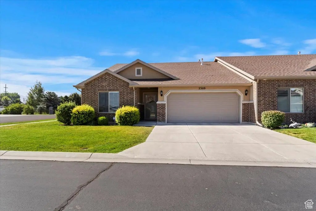Former model home in a peaceful 55+ West Haven community, packed with upgrades and thoughtful details! One of the few homes here with a deep soaker tub in the primary suite, plus the black stainless steel refrigerator is included. Inside, enjoy single-level living with an open floor plan, vaulted ceilings, cozy gas fireplace, and large windows that fill the space with natural light. The gourmet kitchen boasts an 8' island, granite countertops, black stainless appliances, single-basin sink, and electric convection range. The primary suite is a true retreat, with the rare soaker tub, large quartz-surround shower, and generous walk-in closet. Step outside to stunning mountain views from your private back patio. Other upgrades include insulated garage doors, built-in garage shelving, storm door, extra cabinetry and counter space in the laundry room, plus attic storage with a pull-down ladder. The HOA handles yard work and snow removal so you can enjoy a low-maintenance lifestyle with fiber internet available.