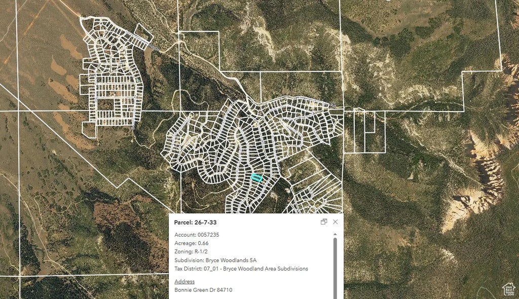 Located in the scenic mountains, this .66-acre lot is the perfect recreational getaway. Surrounded by pine trees and natural beauty, this property offers a great opportunity for camping, RV parking, or building your future cabin retreat. Enjoy cool summer temperatures, peaceful surroundings, and access to a wide variety of outdoor activities including ATV trails, fishing, hiking, and exploring nearby national parks like Zion, Bryce Canyon, and Cedar Breaks. Seasonal access. Buyer to verify availability of utilities, building requirements, and all property information. Legal ALL OF LOT 33 BLOCK 7 BRYCE WOODLAND ESTATES UNIT 5A.