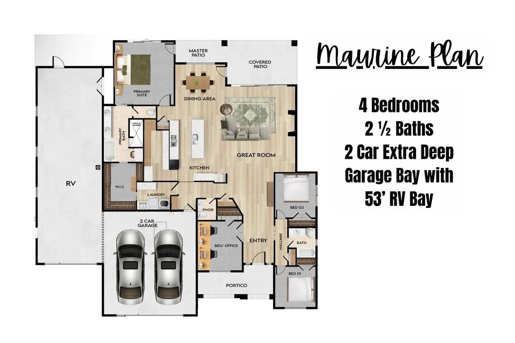 Discover Your Dream Home with Over 5,000 Sq. Ft. Under Roof! This 4-bedroom, 2.5-bathroom residence is more than just a home, it's a statement of craftsmanship and convenience. Built with 2x6 exterior walls, fully insulated, and wrapped in radiant barrier sheeting, this property is engineered for comfort, energy efficiency, and long-term value. Step inside to find luxury upgrades throughout, offering both style and substance. The open-concept layout flows seamlessly into a spacious living area, anchored by a kitchen that's ready for gatherings of all sizes. But what truly sets this home apart is the garage space: A 28' double car garage. A 53' deep RV bay, 'perfect for storing your toys, tools, or even a Class A motorhome. Room to park 4 vehicles total with ease Outside, a 12' deep covered patio invites year-round outdoor living and entertaining. Whether you're a car enthusiast, RV adventurer, or just need serious storage, this home checks every box. Schedule your tour todayhomes with this kind of garage space and build quality are a rare find!