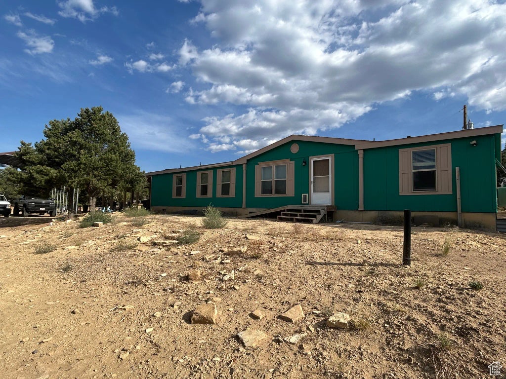 Discover peace, privacy, and endless outdoor possibilities with this spacious 4-bedroom, 1 and 3/4-bathroom manufactured home situated on a beautiful 9.82-acre lot. Surrounded by mature trees and offering year-round access. This property is ideal for full-time living, a vacation getaway, or a recreational basecamp. The home features an open, functional layout filled with natural light, open concept dining area and there is a walk in food pantry just off the kitchen. Outside there is a large covered porch-ideal for entertaining or relaxing. There is a 1,500-gallon water cistern that is connected to the home. There is also a water well on the property, a new pump is needed to bring it into working condition. Bring your RVs, toys, and animals-there's plenty of space for parking, riding, and storing recreational vehicles, plus room for horses with flat, usable land ready for corrals or barns. No HOA restrictions.