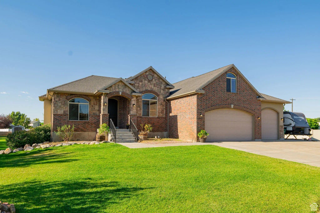 Located in the highly desirable West Haven, Utah area, this fantastic home features Fresh Paint throughout the entire upstairs a full basement apartment and a generous nearly-acre lot with rural-feel landscaping. Ideal for two families or an income opportunity, this residence offers versatile living spaces and smart separation of needs. Enjoy close proximity to I-15, shopping, world-class skiing, and downtown historic 25th Street with a variety of dining options. Inside, the upper level boasts 3 bedrooms, including a primary bedroom with an ensuite bathroom and access to a covered deck. A bonus room above the garage provides added flex space. The great room is set up for entertaining with an adjoining kitchen and dining area, creating an open-concept living space. The downstairs layout includes 2 bedrooms, a full kitchen, a full bathroom, laundry, and a large family/TV room with its own entrance, offering convenient separate living quarters or rental potential. Outdoors, you'll find an extra-large covered patio, RV parking, and ample space for a garden, shop, or future outbuildings. Call today to schedule a private tour. ****Square footage figures were obtained from county records and are considered reliable, buyer to verify all information. water softener is rented and is not included. refrigerator included is black one in basement