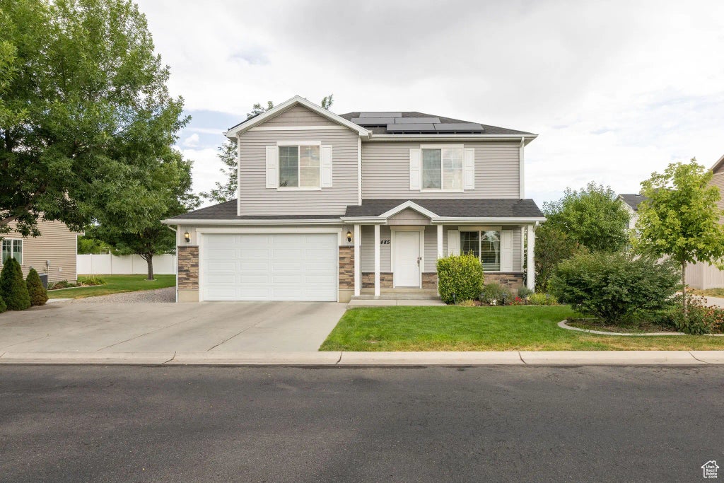 Why would you buy a townhome when you can have all this! This is your lucky day! Welcome home to this inviting one owner very well cared for 2-story home. Built in 2012, featuring 3 bedrooms, 2.5 baths. The open main floor is perfect for gatherings, with natural light filling the living, dining, and kitchen spaces. Upstairs, the spacious primary suite offers a relaxing retreat, while two additional bedrooms provide room for family, guests, or a home office. Sitting on a .17-acre partially fenced beautifully landscaped lot. Enjoy picking your own raspberries! The attached garage is great for added storage. Solar panels offer A huge added bonus for your energy bill! This home is tucked in a desirable neighborhood close to schools, shopping, dining, and recreation-making everyday living both easy and enjoyable.