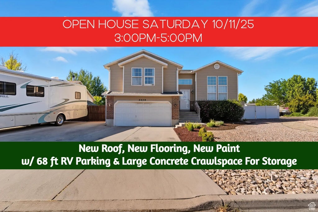 **OPEN HOUSE SATURDAY 10/11/25 from 3:00pm-5:00pm** Awesome find in a great location! Close to so many things. New roof, new flooring, new paint! Park your toys, trailers, or other vehicles on the 68ft RV parking area. Relax on the back deck or on the large covered back patio. Spacious master bedroom w/ its own bathroom & walk-in closet. Good sized grassy backyard w/ maintenance free (Xeriscaped) front yard. Concrete crawlspace has tons of extra storage & is easy to access. Other cool features: vaulted ceiling, backyard shed, and more. Bring your pickiest buyer. Square footage based off of county records. It's recommended that the buyer verify all information.