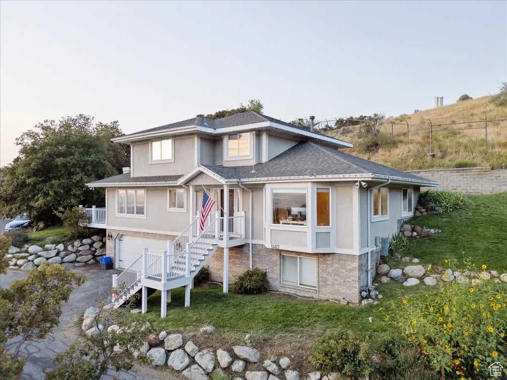 Beautifully maintained East Bench two-story with breathtaking lake, valley, and sunset views. Nestled on nearly half an acre just steps from Bountiful Ridge Golf Course and Mueller Park, this home offers both natural landscaping and a grassy yard for play and entertaining. The bright, modern kitchen has been tastefully updated and opens to a vaulted great room and expansive deck-perfect for gatherings with a view. The spacious main floor bedroom and primary suite feature a luxurious bath with oversized soaking tub, separate shower, dual sinks, and radiant heated floors. Hardwood floors on the main level, well-kept carpet throughout, and fresh, neutral paint provide a warm and move-in-ready feel. The lower level includes a large bedroom currently used as a family room, adding flexibility to the floor plan. A new roof was installed by the previous owners in 2023, along with new water lines throughout the home, giving peace of mind for years to come. Additional highlights include ample storage and quick access to Salt Lake City, the airport, and world-class recreation. Just 15 minutes to downtown and tucked into one of Bountiful's most desirable neighborhoods-this home blends comfort, convenience, and views you'll never tire of. $7500 credit offered through preferred lender.