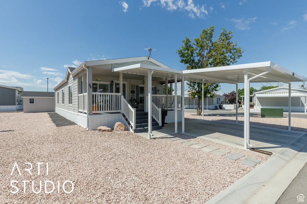 Introducing a charming, move-in ready manufactured home in the desirable Wasatch View Estates of Pleasant View. Nestled on a beautifully landscaped corner lot, this well-maintained residence offers both comfort and convenience in a vibrant, friendly community. Enjoy quick access to upcoming amenities in 2025, including a gated entrance, swimming pool, pickleball courts, basketball and tennis courts, a kids' playground, and potentially a soccer field-perfect for outdoor recreation and community engagement. Highlights include a spacious 20x20 covered carport, a shaded front porch with accent lighting, and a versatile 10x12 shed with 120V electric. The home comes fully equipped with essential appliances-washer, dryer, refrigerator-and a water softener. Please note community requirements: homes must include a carport, an awning over the main entry, and full landscaping upon purchase, with the estimated upgrade costs of $20,000 $30,000. This low-maintenance property offers a turnkey lifestyle-just move in and enjoy everything Wasatch View Estates has to offer in a peaceful, growing community. Ideal for buyers seeking comfort, community amenities. Motivated seller has found a new home and will consider all reasonable offers!