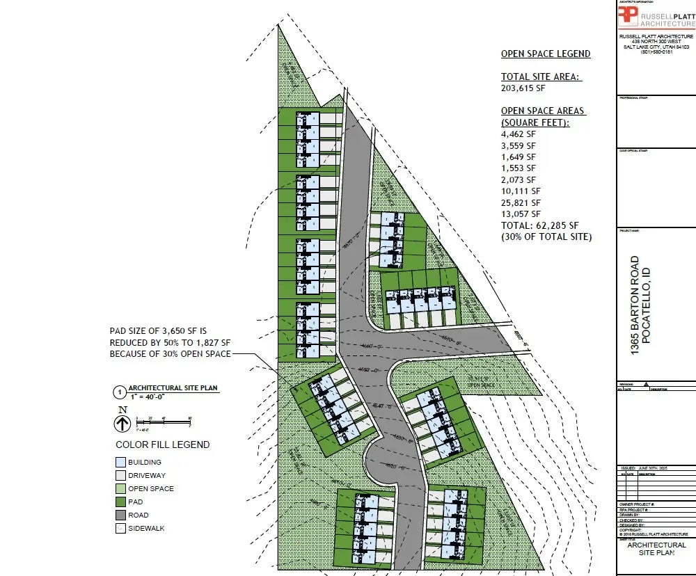 Incredible investment opportunity in the heart of Pocatello! This 4.62-acre property is ideally located near Idaho State University with excellent freeway visibility and quick access to the I-15 exit. The property already has preliminary city approval for 44 townhome units. All utilities are in place, as the land currently includes an existing duplex.