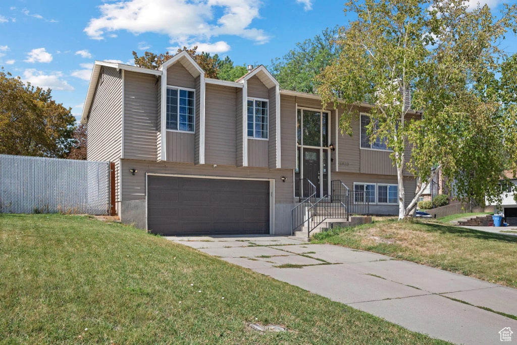 Come see this inviting split-level home with striking stacked stone accents, a theater room, and beautiful mountain views! The main floor offers a bright living area filled with natural light, a modern kitchen with granite countertops, and comfortable bedrooms with plenty of space to unwind. Updated, durable LVP flooring runs throughout most of the main level, adding both style and practicality. Downstairs features a cozy theater room and an office/den-perfect for working from home or as extra living space. The fully fenced backyard includes a storage shed and room to relax or entertain, while a large two-car garage adds everyday convenience. Important updates have already been taken care of, with the A/C, furnace, and water heater all installed around 2017/2018. Located in a welcoming neighborhood close to schools, shopping, dining, and I-215, this home blends comfort, character, and modern updates. This one won't last long-schedule your showing today!