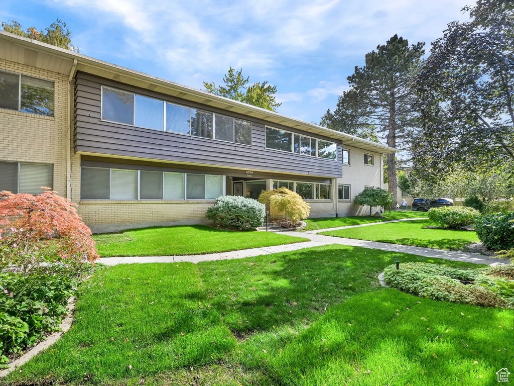 This main-level condo is in the iconic mid-century Graystone community, the first of its kind in the US, as goes the story. Beautiful grounds with mature foliage, and a delightful pool. Close to parks, restaurants, coffee shops and grocery stores, located just south of downtown Sugar House. This particular unit is in such a good spot in the community, near trees and other lush greenery. Modern feel with long row of large windows. Newer Asko dishwasher, stone countertop, undermount sink, and water heater. Roomy communal space with built-in bookshelves, good-sized bedrooms, and large storage closet. In-unit washer/dryer hookups. Central location: approximately 11-minute drive to the University of Utah, or to Millcreek Canyon, and a few minutes away from many local shops and services.