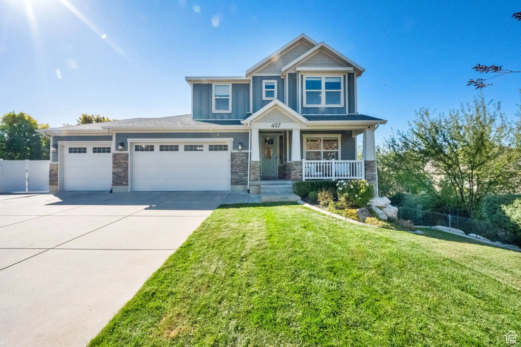 Welcome to this beautifully crafted 6-bedroom, 3.5-bath home tucked in a quiet cul-de-sac in Bountiful. Designed for comfort and function, this home features a main-floor master suite with a free-standing tub, dual showers, and barn door accents. The gourmet kitchen includes double ovens, a farmhouse sink, built-in desk, and large pantry. Upstairs you'll find a spacious loft, two bedrooms with walk-in closets, and a full bath. The walk-out basement is sure to impress with 9' ceilings, a second laundry room, three additional bedrooms, a full bath, cold storage, and plumbing for a future kitchen-perfect for rental potential or multigenerational living. Enjoy the ideal blend of modern amenities and cozy living with plenty of space for entertaining or family time. The outdoor area is beautifully finished with a hot tub-ready setup, epoxy garage floors, RV parking, a 3-car garage, and a covered porch. Conveniently located near schools, shops, and scenic surroundings. Don't miss your chance to call this beautiful home yours!